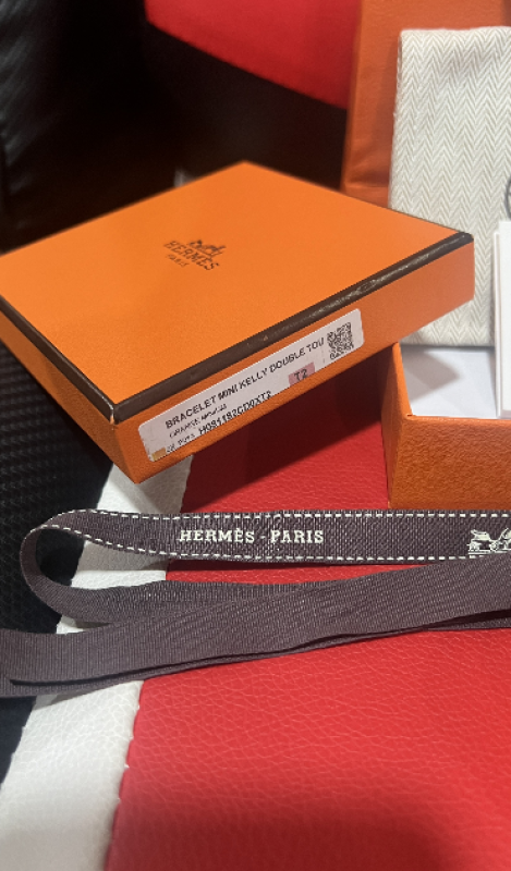 Bracelet mini kelly double tour veau swift plaque สี : Orange Minium ราคา : 12,000 บาท