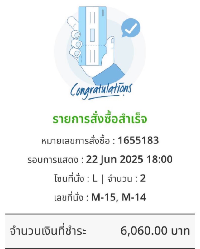 เป็นบัตรคอนเสิร์ตค่ะราคาบัตรล่ะ 3030 บาทค่ะ