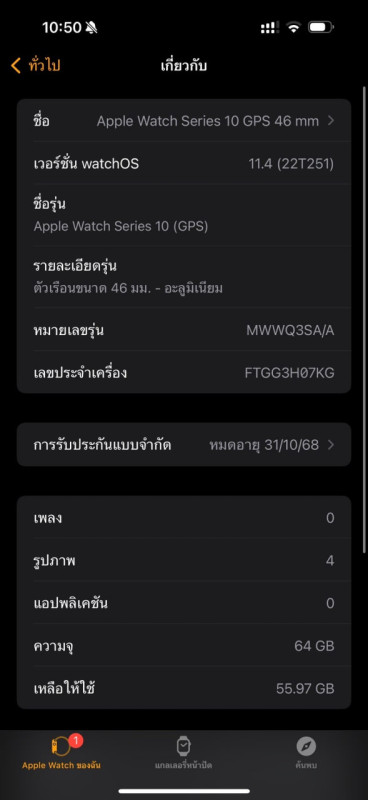 ปล่อย Apple Watch Series 10(GPS) 46MM. ประกันศูนย์เหลือถึง 31/10/68 ตัวเครื่องไม่มีรอย ขายเพราะตัวเรือนใหญ่🥹 ปล่อย12000บาท แถมเคส SKINARMA