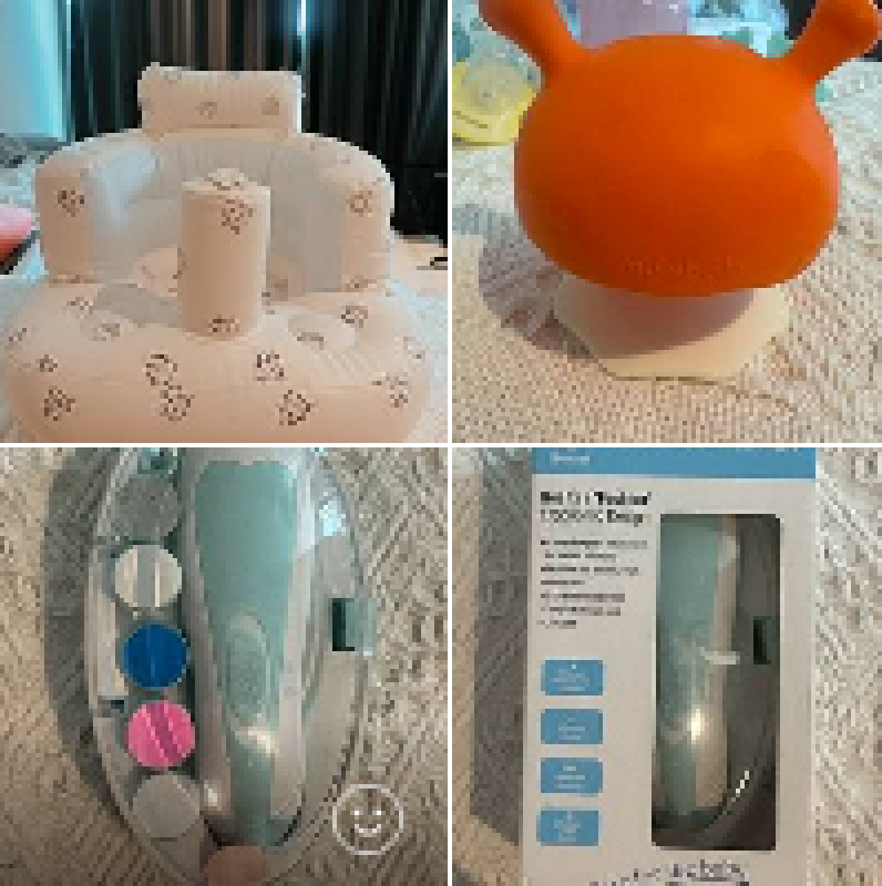 ส่งต่อของใช้มือสอง 👉ที่นอนกันกรดไหลย้อน ลาย Iris รุ่น Classic m ตอนนั้นซื้อมา ราคา 2790 บาท *มีตำหนิ ผ้าคลุมขาด สามารถถอด ซื้ออันใหม่ใส่ได้ค่ะ ส่งต่อ 700 บาท 👉ที่นั่งเป่าลม น้องไม่นั่งเลย 50 บาท 👉กรรไกรตัดเล็บเด็ก 60 บาท 👉ยางกัดเห็ดของ mombella ซื้อมา 289 บาท ลูกไม่ใช้เลย ส่วนมากติดจุกหลอกมากกว่า ขาย 60 บาท