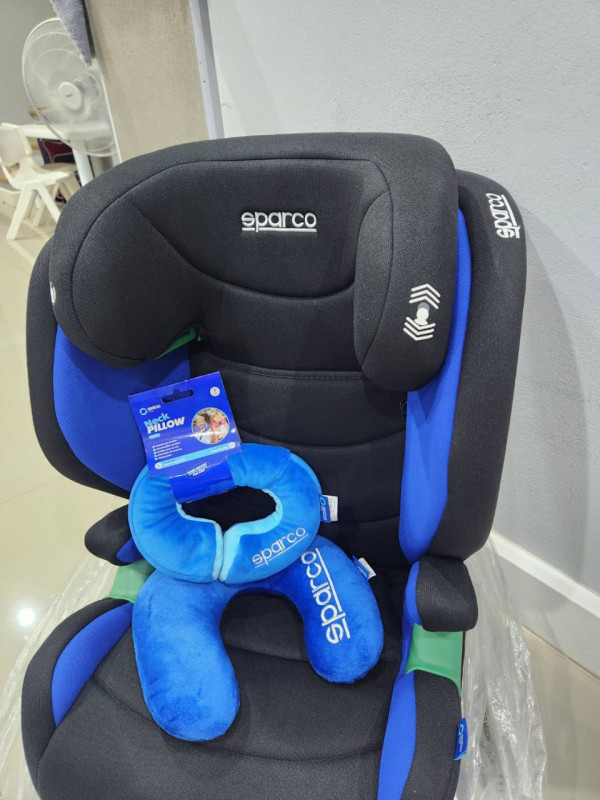 ส่งต่อคาร์ซีทลูกชาย แบรนด์ sparco มือ1 ใหม่ไม่เคยใช้งาน เหมาะสำหรับเด็ก3ปีขึ้นไป (ส่วนสูง76-150cm) แถมหมอนรองคอ2ชิ้นตามภาพ ราคา 3,500 รวมส่ง