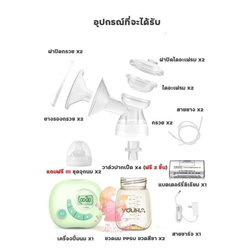 เครื่องปั๊มนม Youha YH-8004 สีเขียวมิ้นท์ 📌เครื่องรุ่นใหม่ปีล่าสุด 2024🔥 การทำงาน 3 โหมด 6 ระดับ 🔥 อัปเกรดซิลิโคนรองกรวย แบบใหม่ นิ่มละมุนกว่าเดิม 🔥 อัปเกรดเกรดชุดกรวยแบบใหม่ ขนาด 24 มม. 🔥 ขวดนมสีชา PPSU ขนาด 7 ออนซ์ 🔥 (ผ่านมาตรฐาน วัสดุเกรดอาหารจากประเทศเยอรมัน) 🔥 มีแบตลิเธียมไอออนความจุสูง ปั้มแบบไม่เสียบสายชาร์ตได้ 🔥 ปั้มแรงดี เกลี้ยงเต้า แต่ไม่เจ็บ 🔥 เสียงเบา มาก ไม่รบกวนการนอนของลูกน้อย ✔️เครื่องสภาพดีใหม่ใช้งานแค่ 1 เดือน ✔️มีประกันถึง เมษายน 68 ✔️อุปกรณ์ครบ ✅แถมฟรีกรวยซิลิโคน 27 mm. ราคา 2,500฿ รวมส่งค่ะ